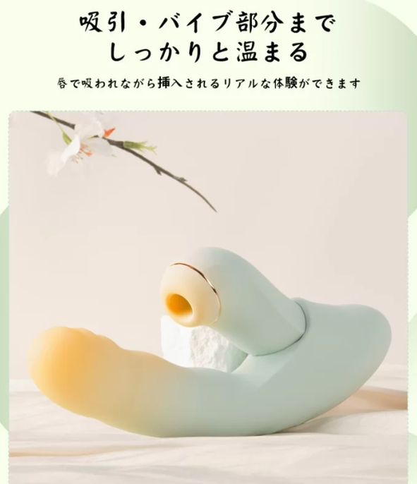 挿入部分には、最大4cmのストロークを誇る7種類の伸縮モードと、10種類の振動モードを用意。奥までしっかりと刺激し、Gスポットやポルチオへのアプローチもばっちりです。さらに、挿入部にも温感機能がついており、リアルな肌触りで包み込むような温もりを感じられます。